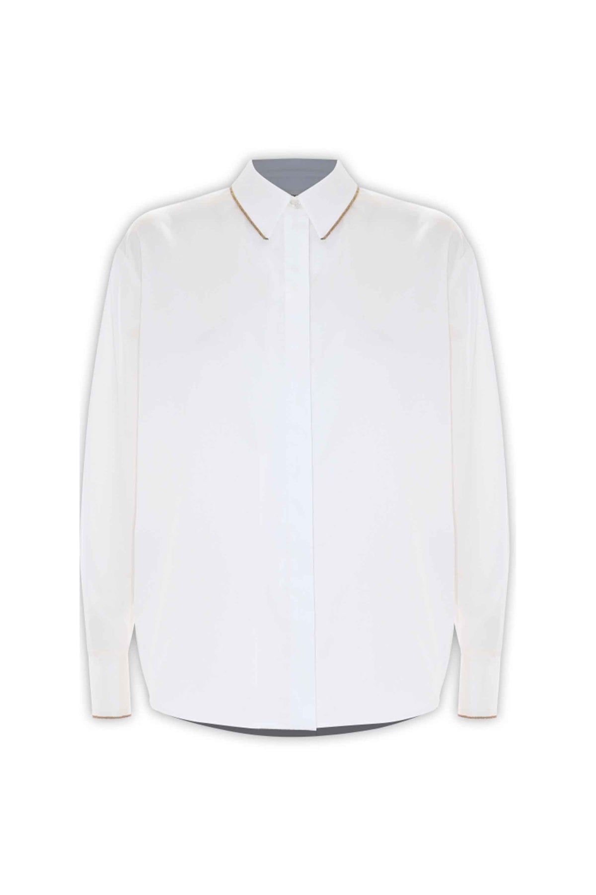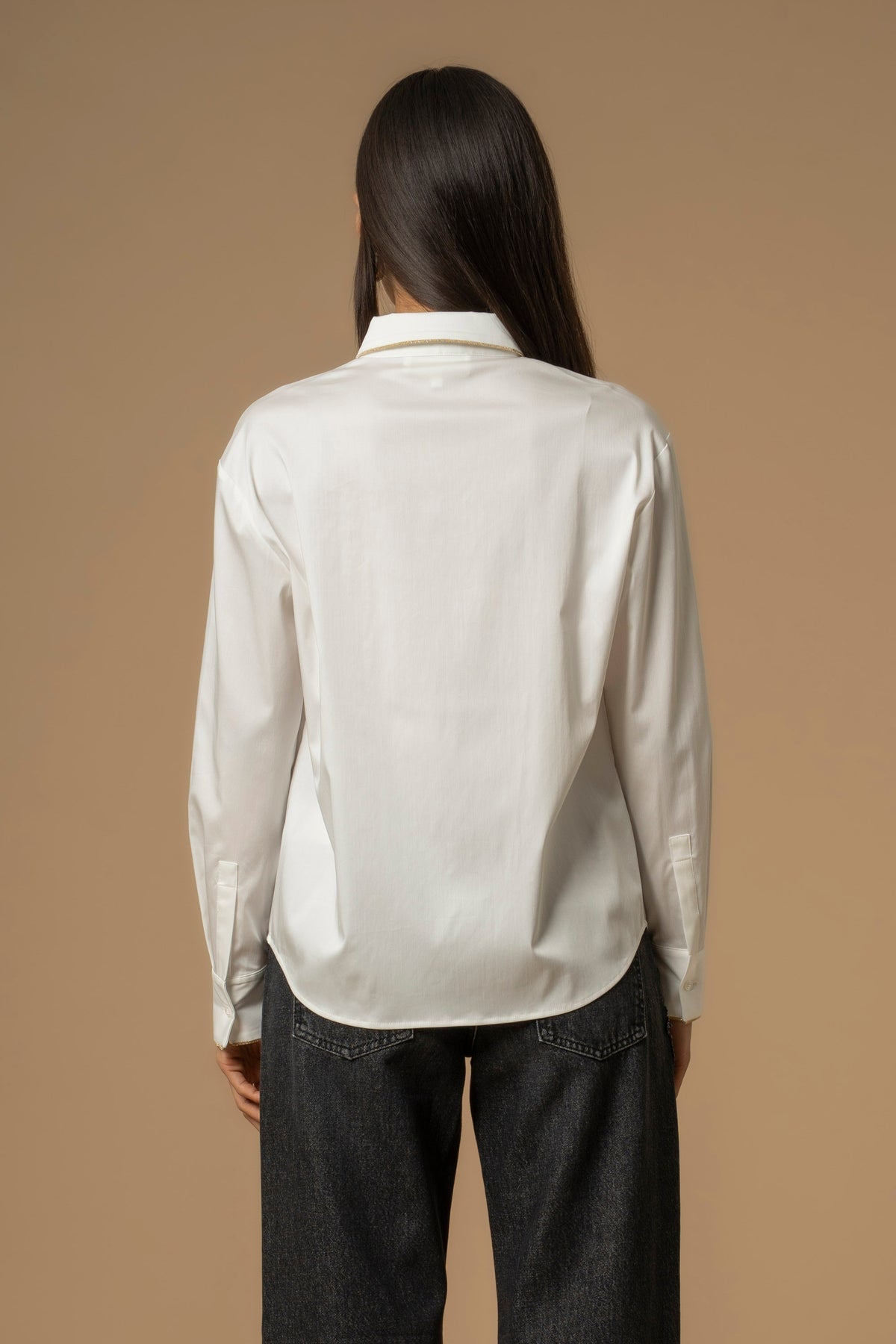 Uno stile raffinato che non rinuncia a un piacevole accento casual per questa camicia della capsule Pure Verve caratterizzata dalla chiusura con bottoni nascosti sul davanti e colletto classico.