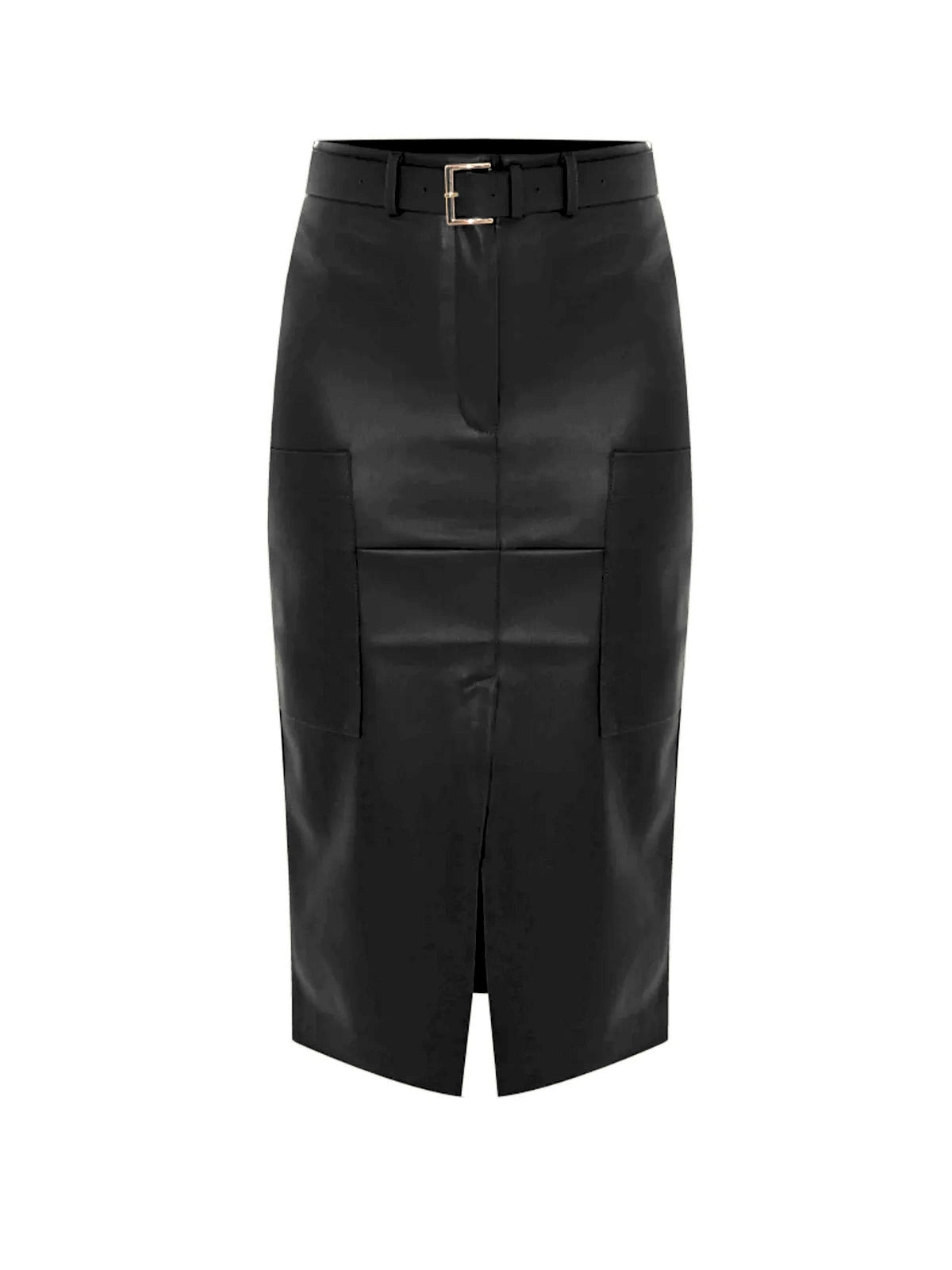 Il tessuto in ecopelle regala a questa a questo gonna longuette grinta e carattere. Elegante e versatile, presenta uno spacco e ampie tasche sul davanti, chiusura con zip e cintura in vita.La gonna nel nostro store è in variante nera, nella foto è verde militare, la foto l'abbiamo usata per dimostrare la vestibilità del prodotto