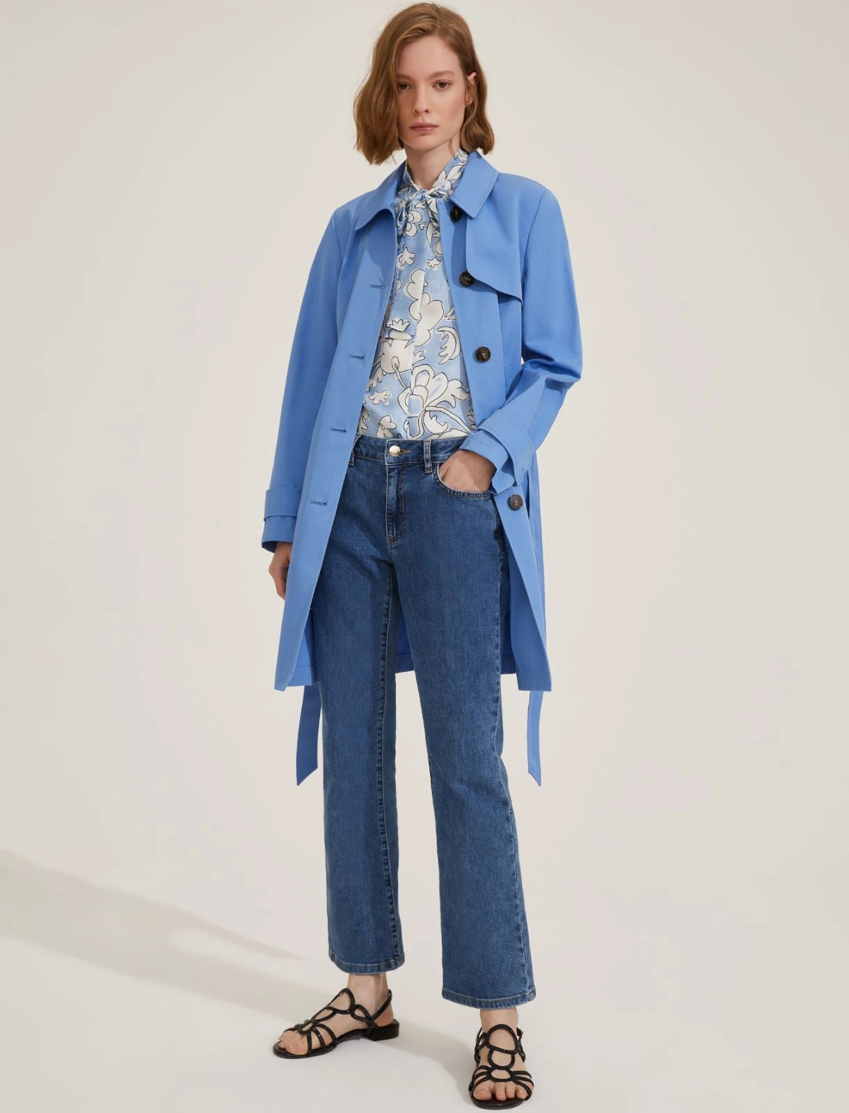 - Chiusura monopetto con tasche a filetto e cintura in tessuto