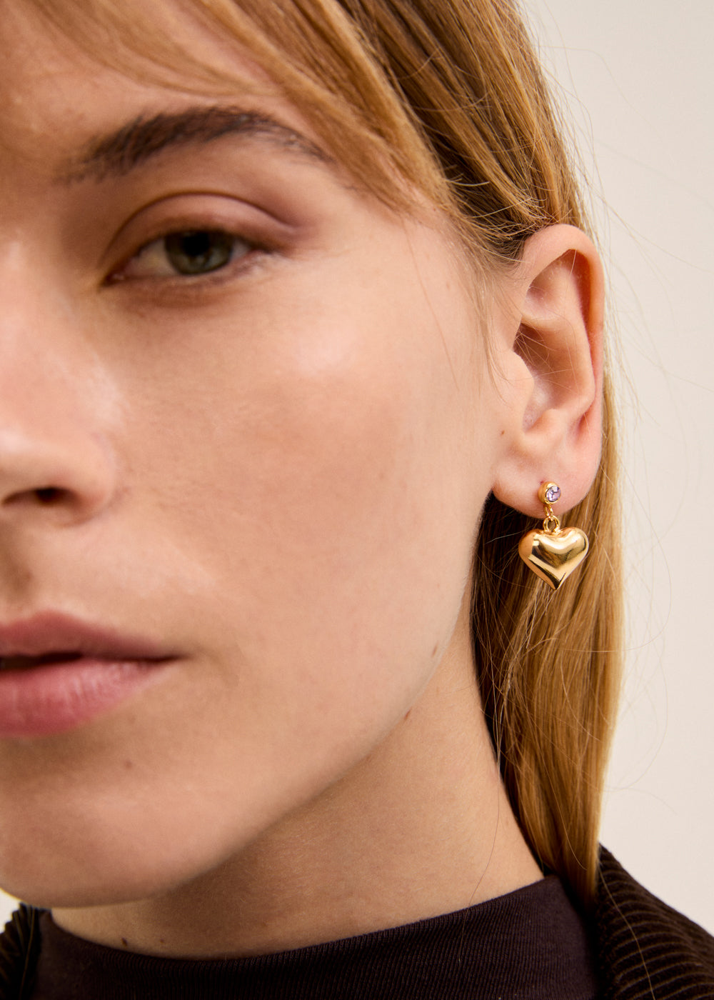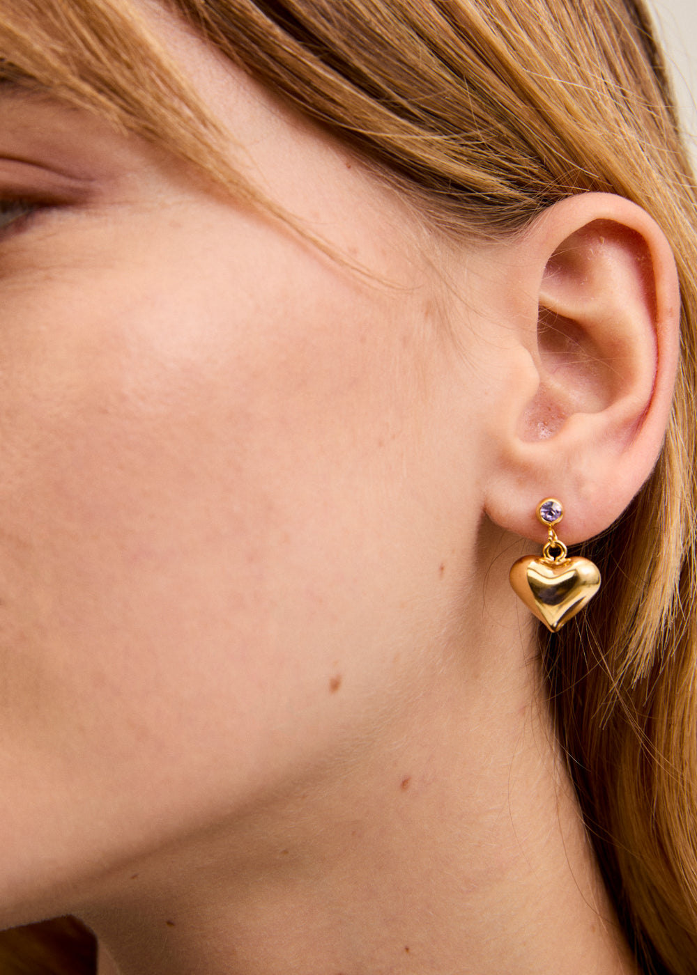 Orecchini pendenti con cuore bombato e punto luce superiore. Un accessorio romantico e raffinato, pensato per aggiungere un tocco di dolcezza e femminilità ad ogni look.