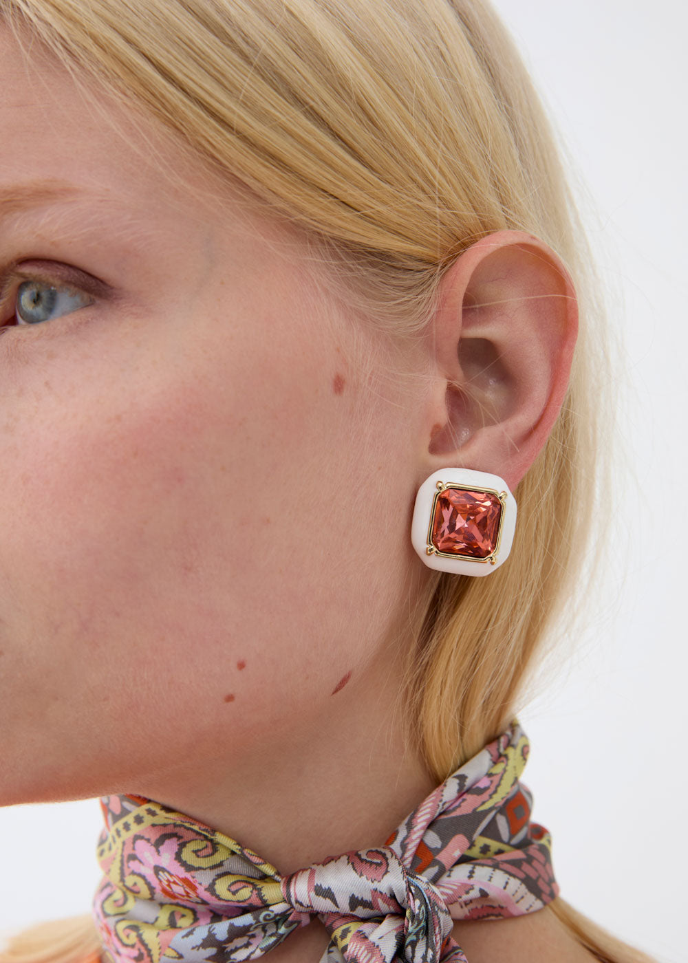 Orecchini serena con pietra bianco e rosa