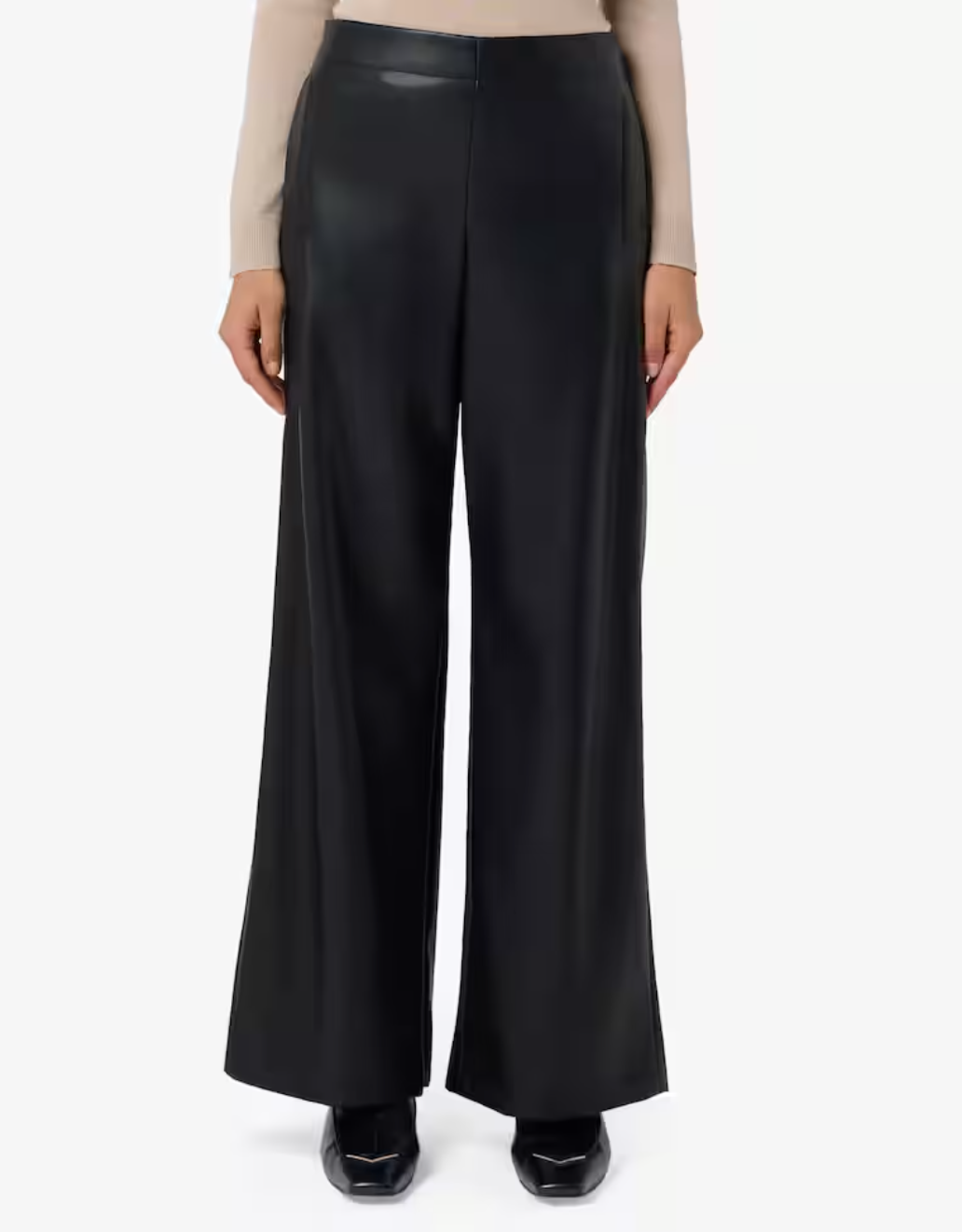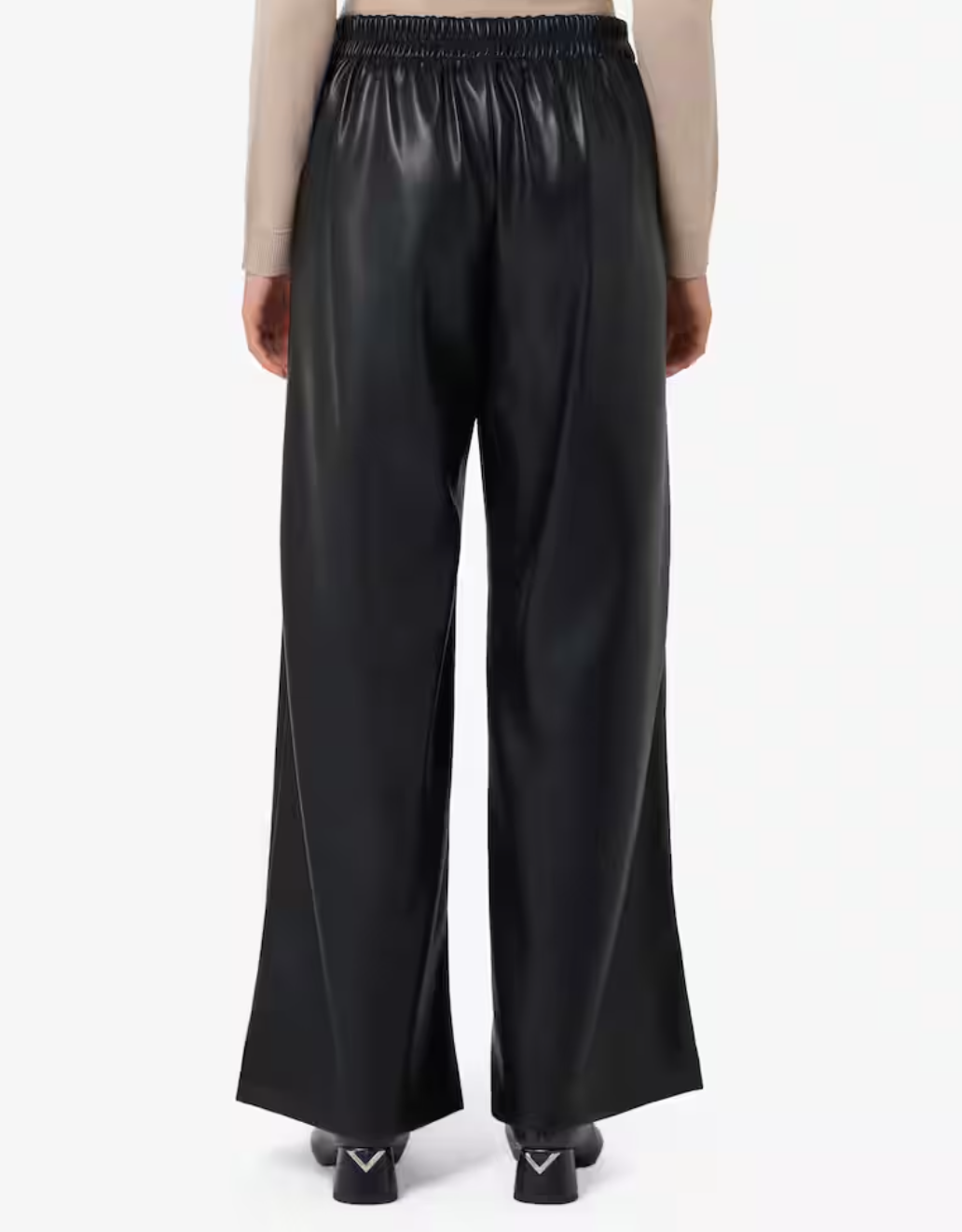 Pantaloni "Anello" color testa di moro a gamba larga con vita elasticizzata. Realizzati in jersey soft suede spalmato effetto pelle per un look moderno e una texture morbida.