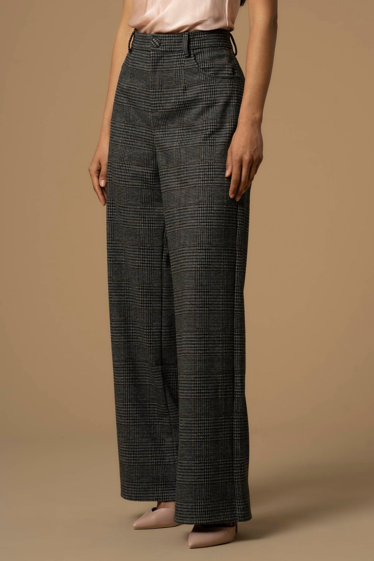 Questi pantaloni in fantasia principe di Galles sono perfetti per creare outfit ricercati e ricchi di stile. Pratici e raffinati al tempo stesso, presentano un taglio dritto leggermente ampio, passanti in vita e chiusura con zip e bottone rivestito.