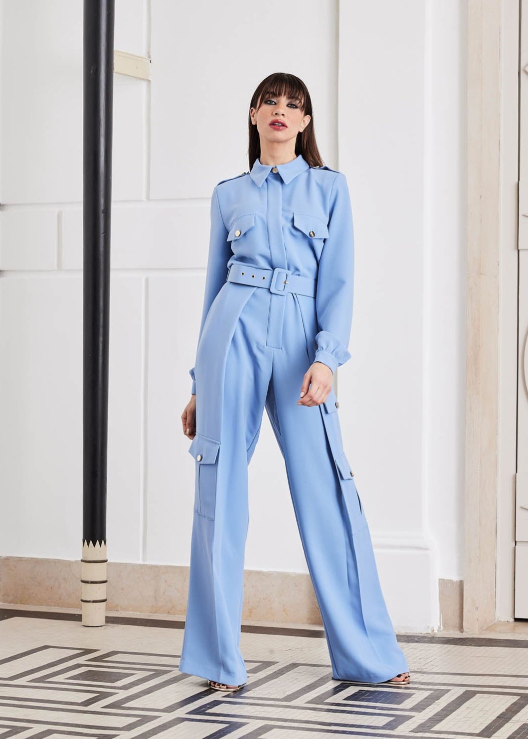 Realizzata con tessuti di alta qualità, offre un perfetto equilibrio tra stile e praticità. Il colore azzurro vibrante conferisce un tocco fresco e moderno, mentre i tasconi frontali, ampi e ben posizionati, aggiungono un elemento di utilità senza compromettere l'estetica. La vestibilità è rilassata ma strutturata, ideale per un look sofisticato.